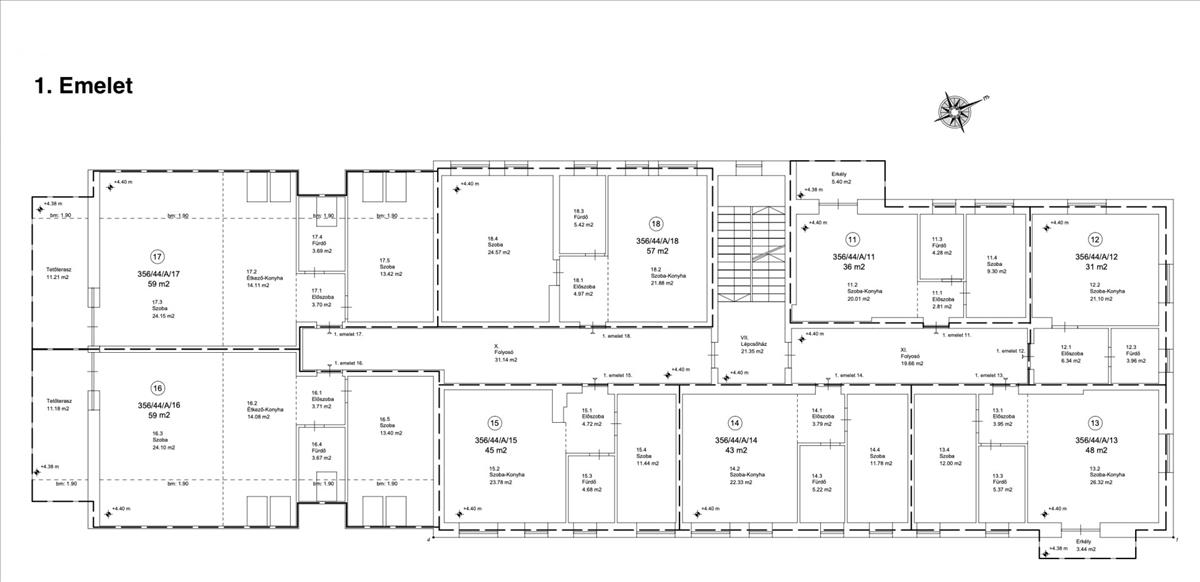 15. Lakás - 45 m2 - 49. 500. 000 Ft. + Autóbeálló 1. 500. 000 Ft. + 2. 57 m2-es tároló 899. 500 Ft.