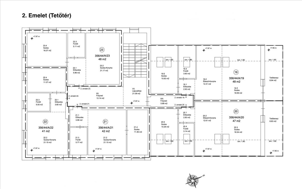 19. Lakás - 48 m2 (bruttó 54. 77 m2) + 8. 94 m2 terasz - 57. 770. 000 Ft. + Autóbeálló 1. 500. 000 Ft. + 4. 1 m2-es tároló 1. 435. 000 Ft.
