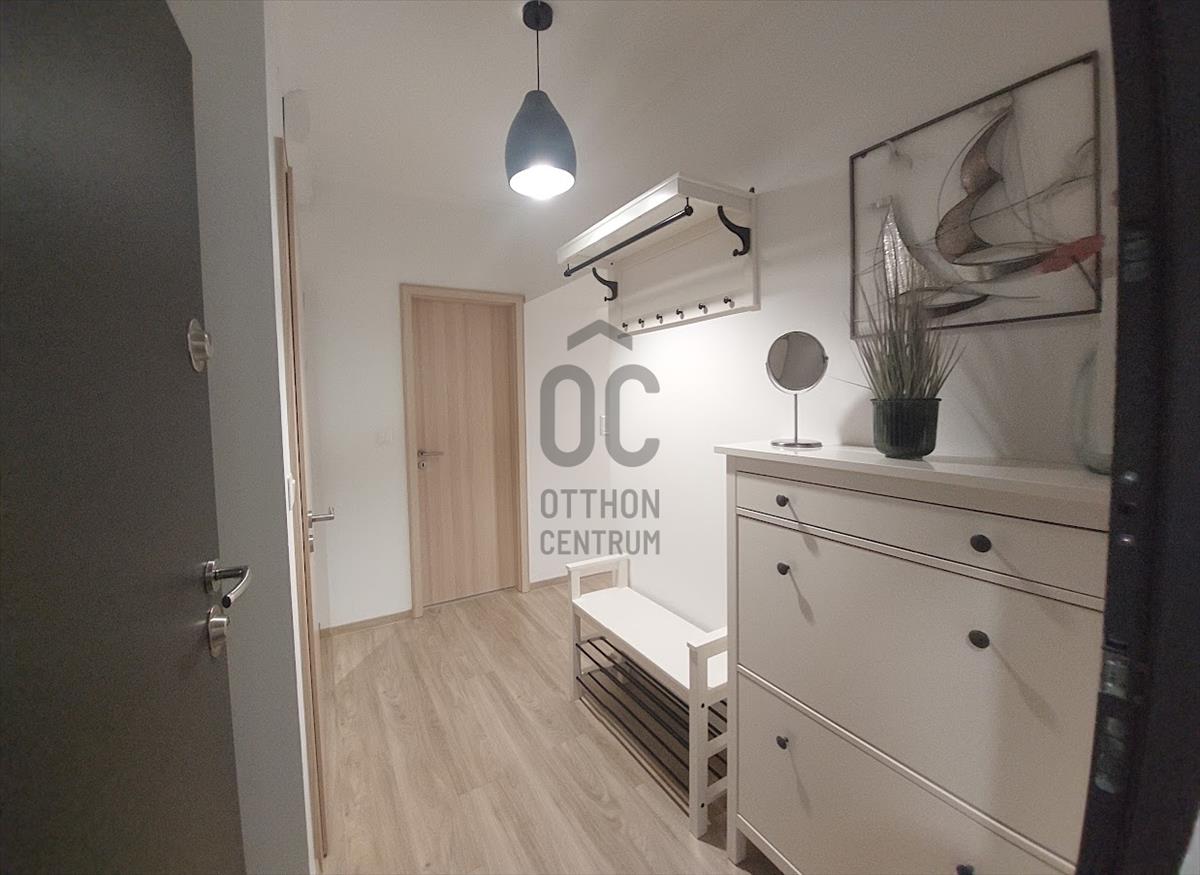 A lakás helyiségei: előtér, fürdőszoba, wc, egy tágas hálószoba, teljesen felszerelt konyha-étkező, világos nappali.