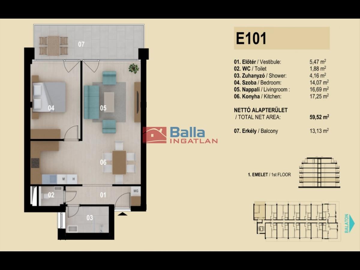 A Balla Ingatlan siófoki irodája 71 lakásos társasházban kínál panorámás, vízparti lakásokat megvételre. Praktikum, használhatóság, fenntarthatóság jellemzi a lifttel rendelkező ingatlant. Jó elhelyezkedés, igényes tervezés, értékállóság 6 szinten.