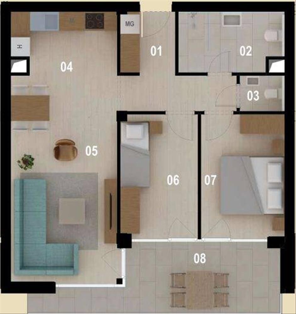 -praktikusan kialakított belső elrendezés, külön nyíló komfortos hálószobák