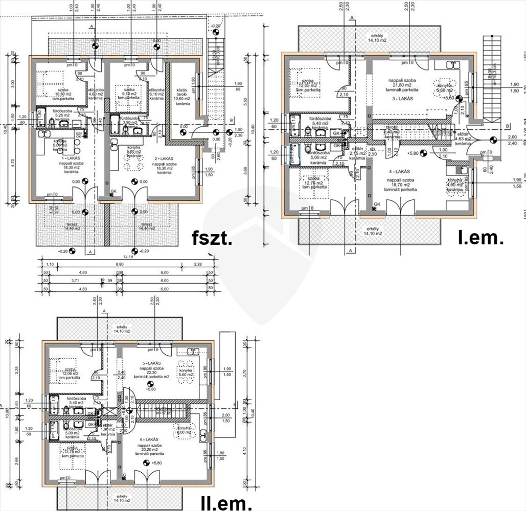 - Födémek: 19 cm magas, előfeszített vasbeton gerendás, kerámia béléstestes
