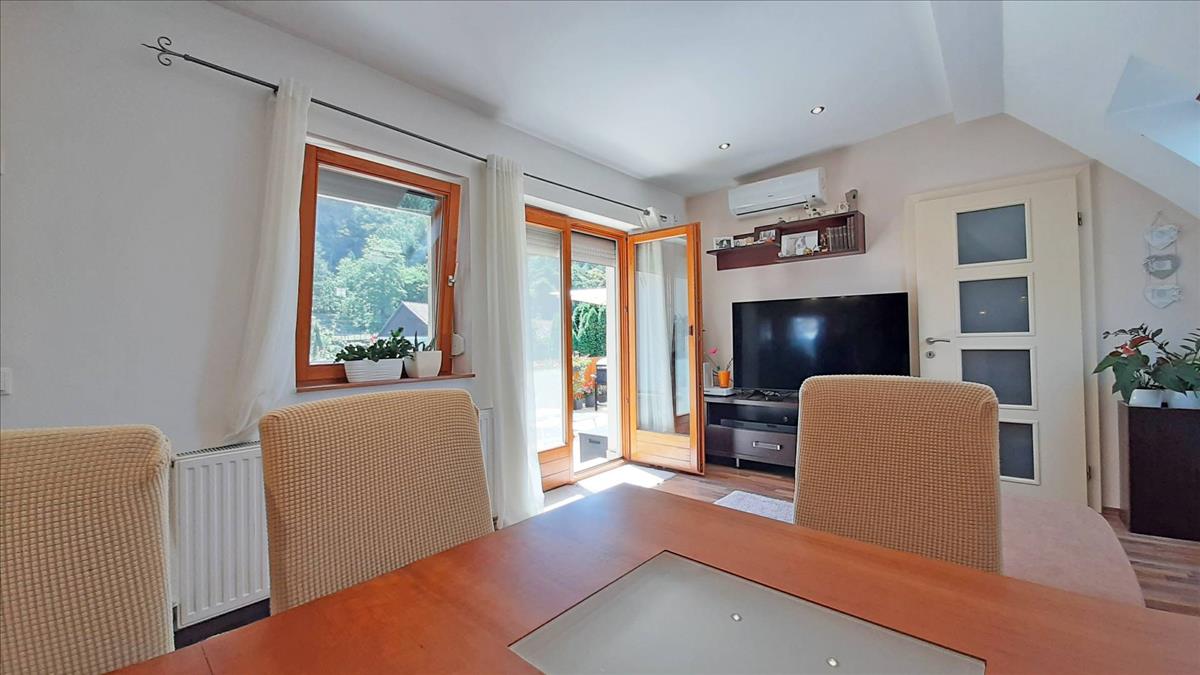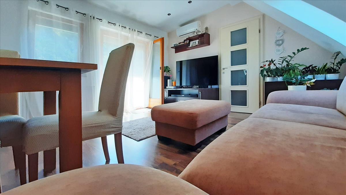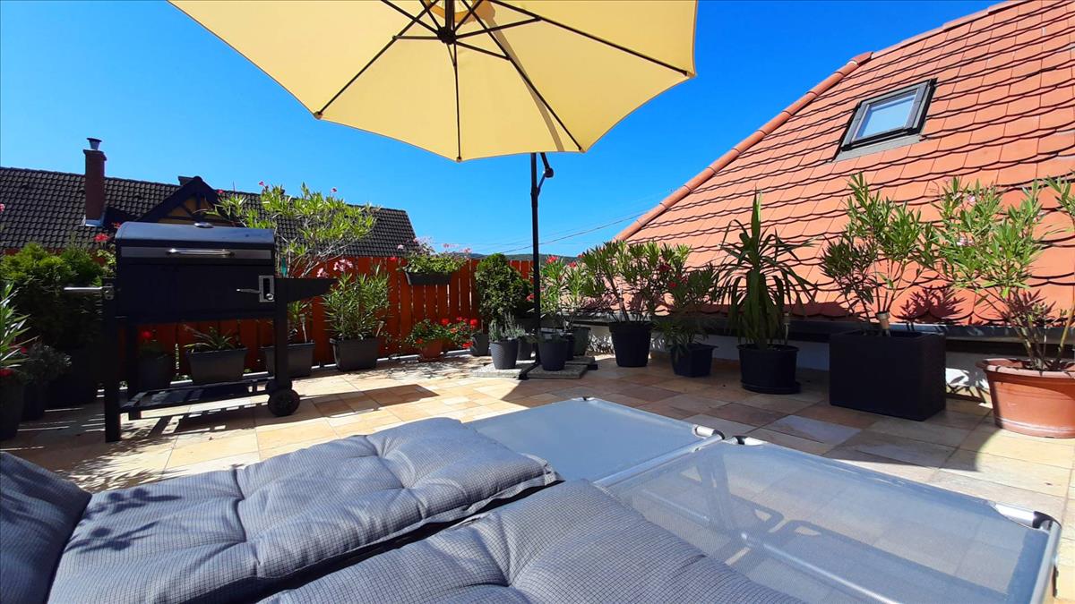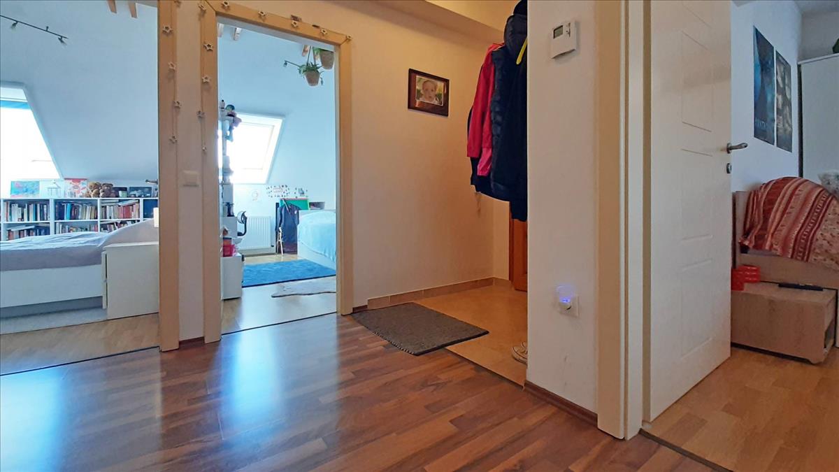 A bruttó 99. 45 M²-es (nettó 75. 19 M²) lakás részben tetőtéri kialakítású, amelyet jól kompenzálnak a függőleges, teljes értékű falak. Az ingatlan tágas és jól élhető terekkel rendelkezik, amelyeket a 36. 82 M²-es nagy terasz tökéletesen kiegészít. Innen lenyűgöző panoráma tárul elénk, amely minden pillanatot különlegessé tesz és tökéletes helyet biztosítanak a családi összejövetelekhez, pihenéshez, és játékhoz.