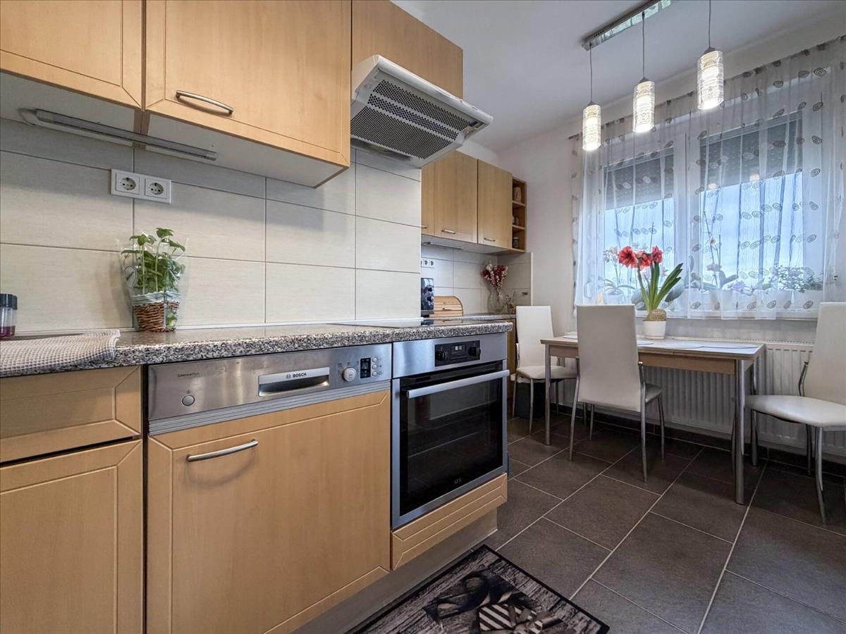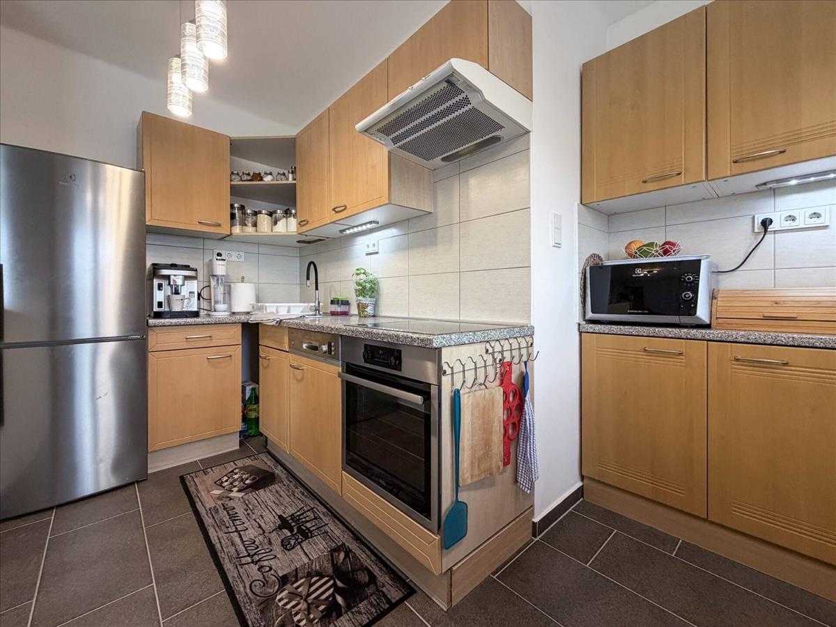 A vételár része: konyhabútor beépített gépekkel • mosogatógép • elektromos sütő • főzőlap • elszívó • étkezőasztal + 4 szék • előszoba bútorai • nappali elemes bútorösszeállítása