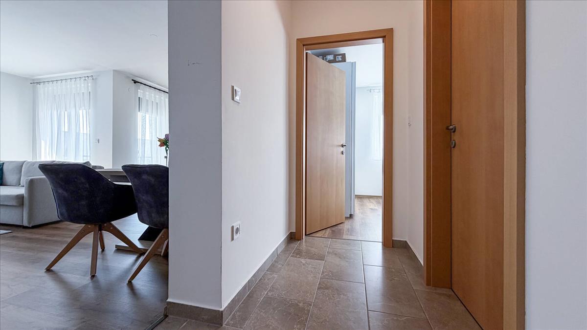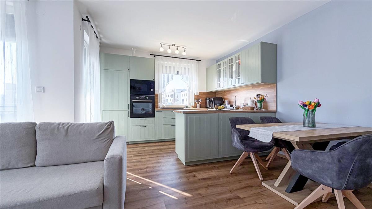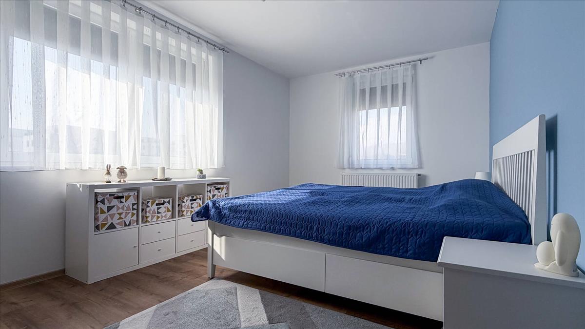 A szobákban magas minőségű kopás- és vízálló vinyl burkolat található, amely modern, elegáns és praktikus.