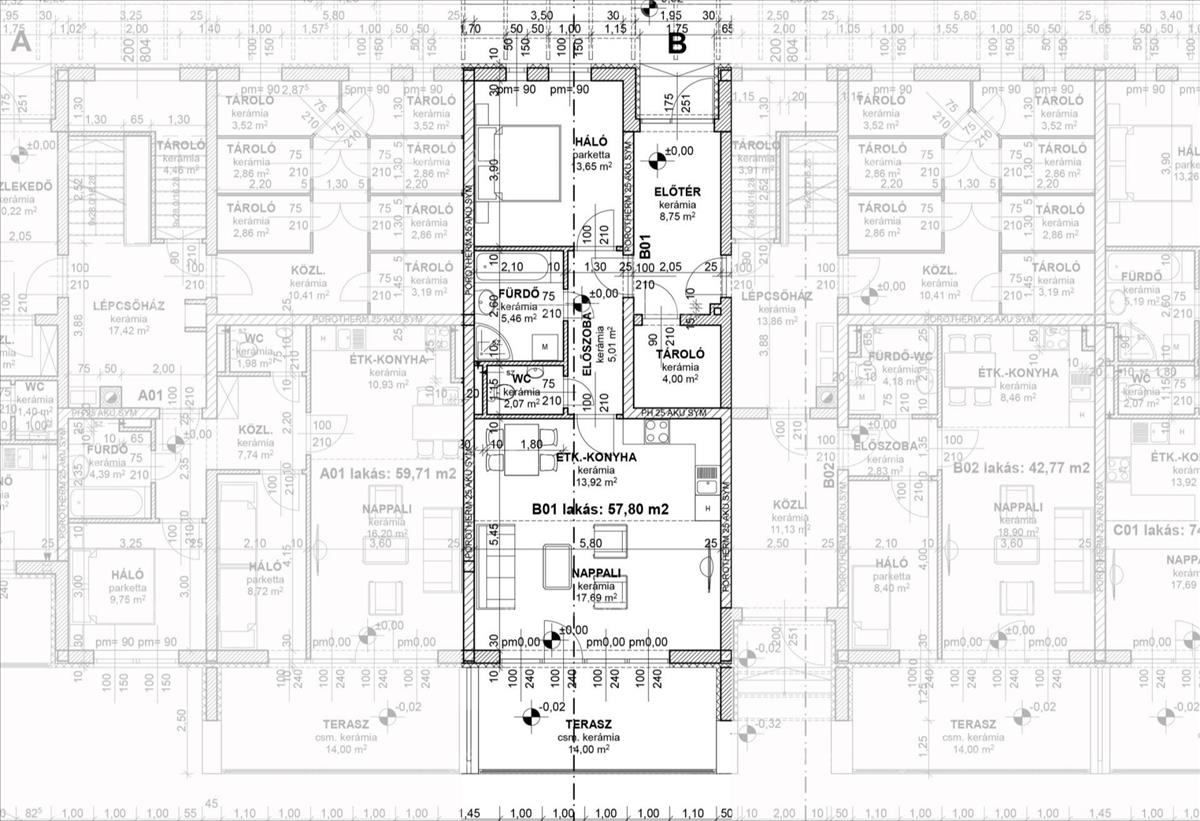 ELADÓ egy földszinti, amerikai konyha-nappali + 1 hálószobás, 57. 8m2 alapterületű lakás + 14m2-es terasszal!