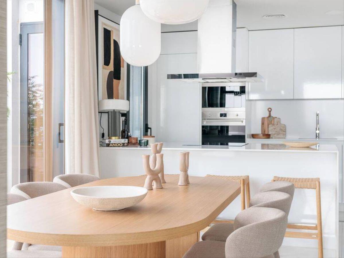 Az épület modern, minimalista formájú, harmóniában a környezettel, amelyben található. Az otthonok belső terei sem ütköznek ezzel, hiszen a legújabb építési és dekorációs trendek szerint épülnek. Mindegyikhez tartozik egy nagy terasz üvegkorláttal, hogy élvezzük a kilátást és a napfényt, amely évente több mint 300 napon át süt a környéken. a living room ötvözi az étkezőt, a nappalit és a konyhát egy nagy, nyitott terű luxustérben, csúcsminőségű kivitelben. a konyha teljesen felszerelt. Minden hálószoba kétágyas, és néhány, a választott ingatlan változatától függően, saját fürdőszobával rendelkezik.