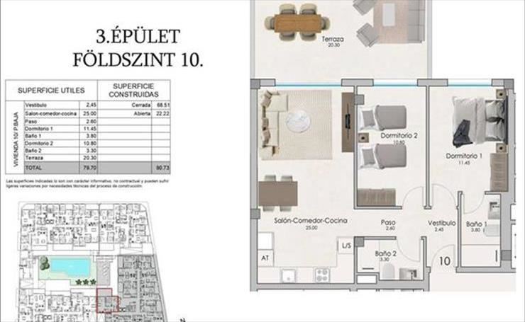 3 hálószoba +2 db fürdőszoba, + 12. 65m2 terasz 290. 000EUR-tól