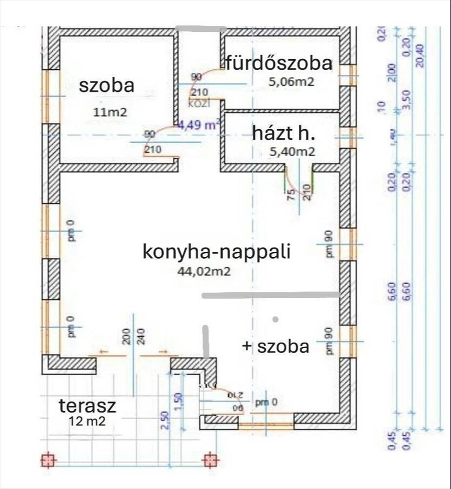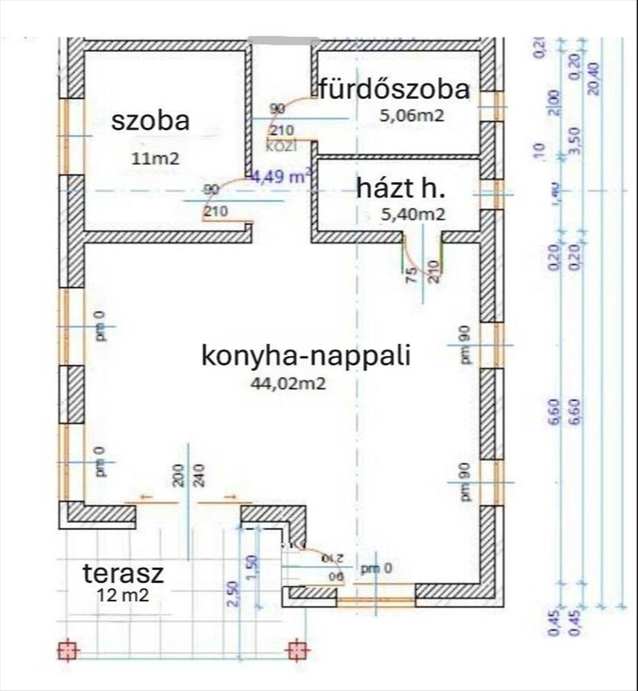 -Nagyobb helység( Étkezős konyhás nappali akár + szoba is leválasztható) szoba kialakítható) 44nm