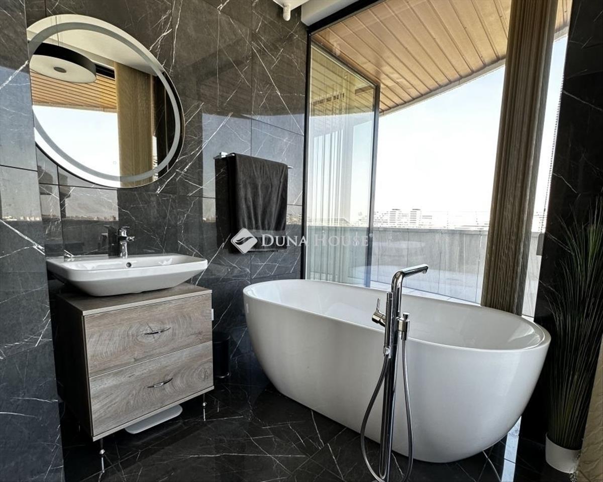 Luxus penthouse lakás eladó Szegeden, a Cédrus lakópark exkluzív környezetében! Ha egy igazán különleges, prémium otthont keres Szegeden, ez a 6. emeleti penthouse lakás minden igényt felülmúl. Az emeleten mindössze három lakás található, így a nyugalom és a privát élettér garantált, miközben a lakásból nyíló egyedülálló panoráma minden napszakban lenyűgöző látványt nyújt. a lakás központi tere egy rendkívül tágas, világos nappali-étkező, amely tökéletes helyszíne a mindennapi életnek és a vendégek fogadásának is. a modern kialakítású konyha praktikus konyhapulttal és beépített gépekkel felszerelt, így egyszerre esztétikus és funkcionális. Az ingatlanban két kényelmes méretű szoba található, melyek közül az egyik valódi lakosztályként funkcionál: saját fürdőszobával és gardróbbal biztosít maximális kényelmet és intimitást. a lakás egyik legnagyobb értéke a 70 nm -es, körbefutó terasz, amely minden helyiségből elérhető. Ez a különleges kültéri tér ideális reggeli kávézáshoz, esti kikapcsolódáshoz vagy akár baráti összejövetelekhez valódi penthouse életérzést nyújt. a kellemes hőmérsékletről korszerű geotermikus fűtés és hűtés gondoskodik, amely energiatakarékos és környezetbarát megoldás. Ezt tovább növeli a beépített klímaberendezés, valamint a szúnyoghálóval ellátott nyílászárók, amelyek a komfortérzetet még magasabb szintre emelik. a lakópark infrastruktúrája kiemelkedő: helyben elérhető konditerem, élelmiszerbolt, éttermek, fodrászat, és számos egyéb szolgáltatás, így szinte minden megtalálható, ami a kényelmes mindennapokhoz szükséges. a közlekedés kiváló, Szeged belvárosa néhány perc alatt elérhető, így a nyugodt lakókörnyezet mellett a városi élet előnyei is könnyedén kihasználhatók. Az ingatlan vételára a teljes, igényes bútorzatot is tartalmazza, így akár azonnal költözhető, kompromisszumok nélkül. Ez a lakás tökéletes választás azok számára, akik luxust, kényelmet és egyedi életérzést keresnek egy modern, magas színvonalú környezetben. Megtekintési szándékával, vagy kérdés esetén, hívjon bizalommal!