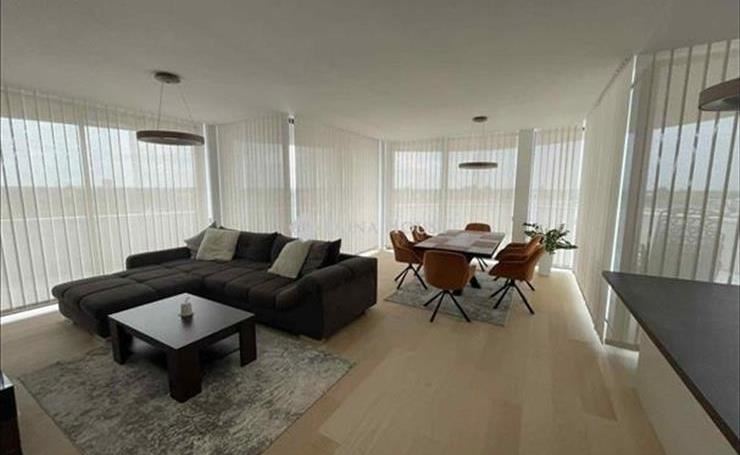 A lakás tágas nagy terekkel rendelkezik, a térhatást tovább növeli, a terasz felől lévő hatalmas, teljes falas üvegfelület.