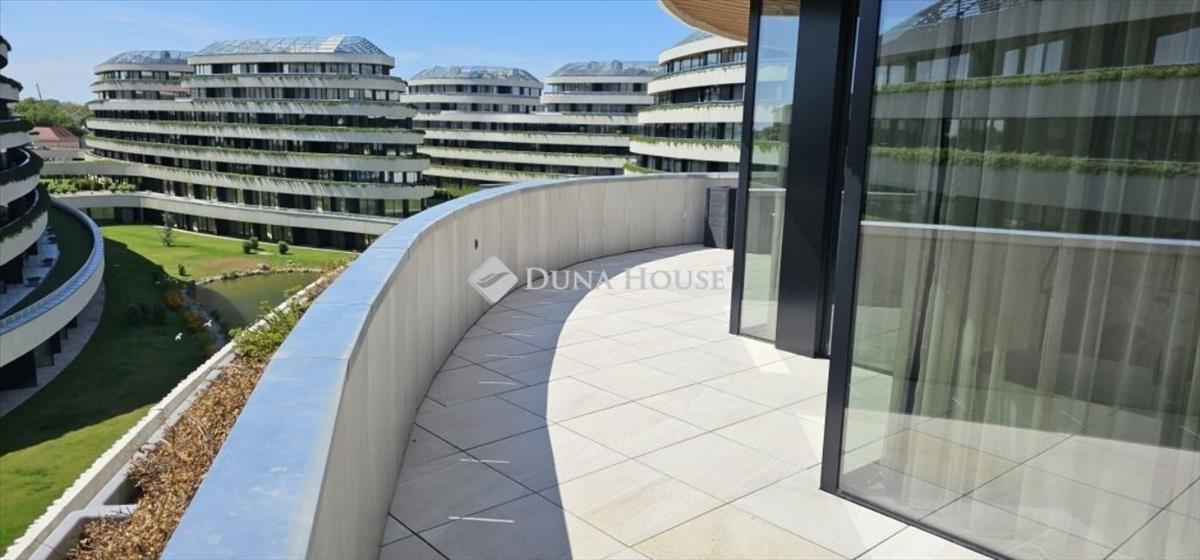 Az egyik ovális épület 3. emeletén található, 41 m² alapterületű, kiváló elosztású ingatlanhoz egy impozáns, 41 m²-es fedett terasz tartozik, melyről gyönyörű, tóra néző panoráma élvezhető.