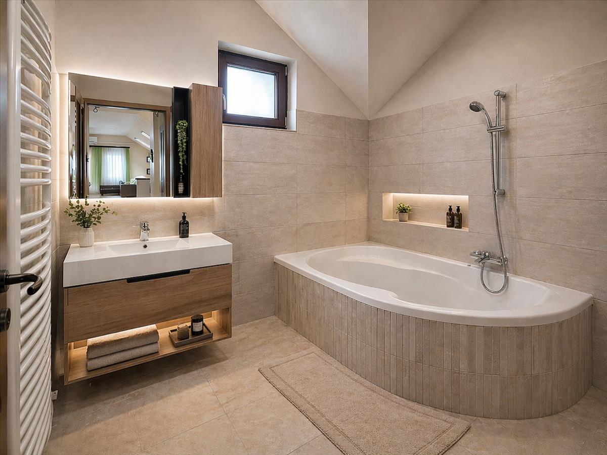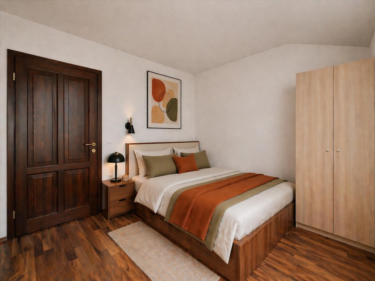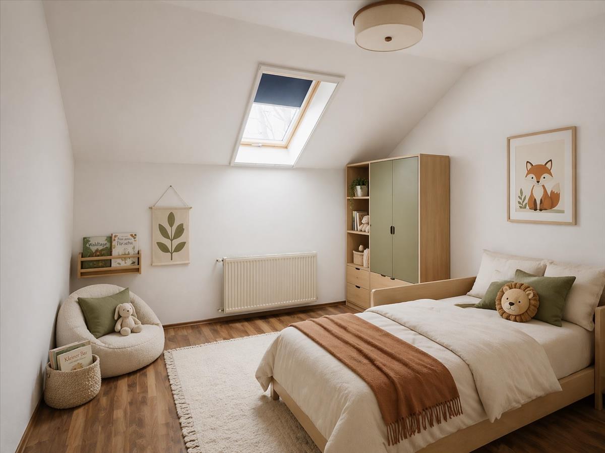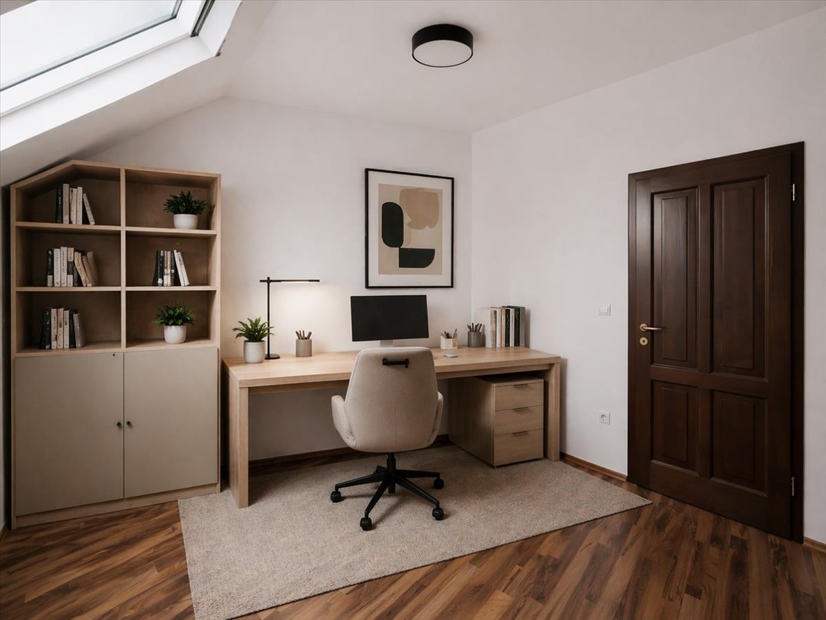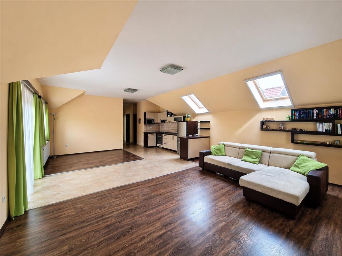 A tetőtéri hangulat külön karaktert ad a lakásnak, de a használhatóság sem vész el: a ferde falak csak 180 cm-nél kezdődnek, így nem kell minden bútornál kreatív túlélési stratégiát kidolgozni.