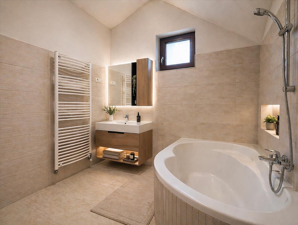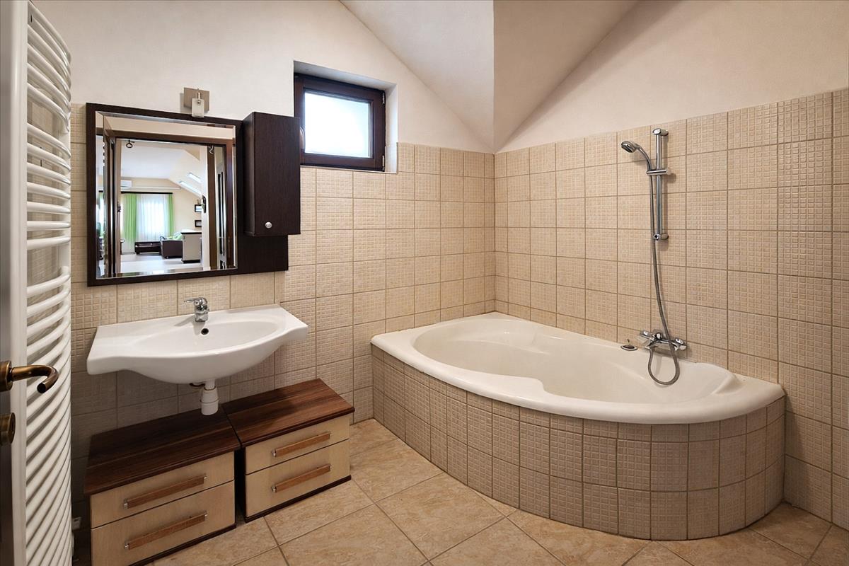A kényelmet Daikin hűtő-fűtő klíma, Junkers kazános cirkófűtés, valamint a fürdőben és a külön WC-ben padlófűtés teszi teljessé.