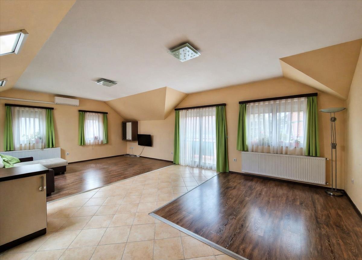 A hőszigetelt, minőségi fa nyílászárók redőnnyel felszereltek, a tetőtéri ablakokon szúnyogháló és árnyékoló is van!