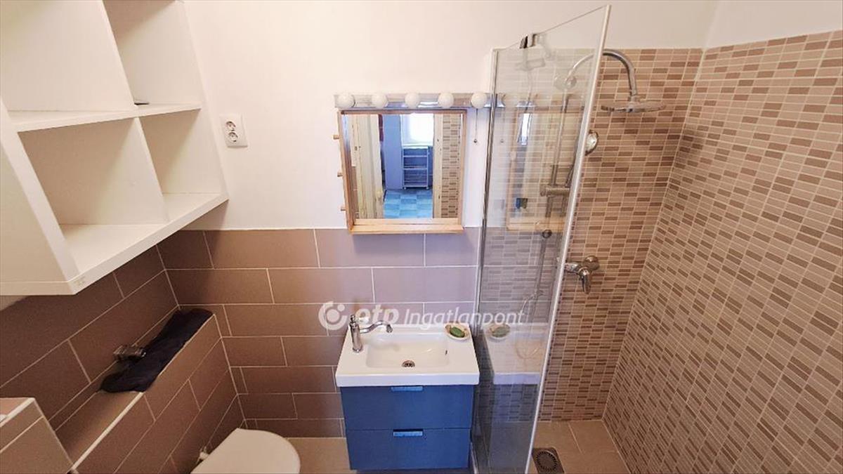Teljesen felújított fürdőszoba (5 éve) walk-in zuhanyzóval, modern szaniterekkel és burkolatokkal.