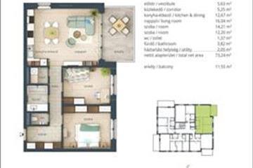 - lakóterület: nettó 73, 24 m2 + 11, 55 m2 erkély