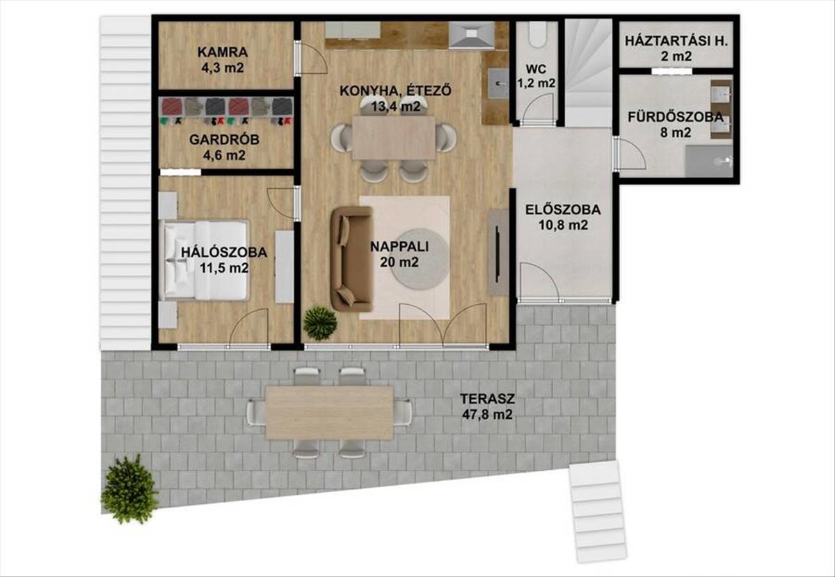 - 2 terasz, 2 fürdőszoba, gardróbok