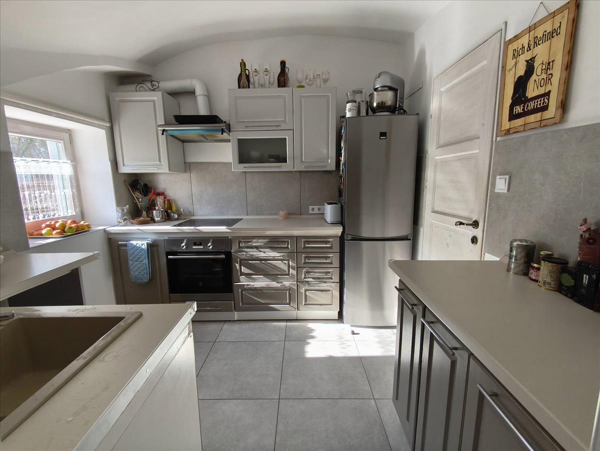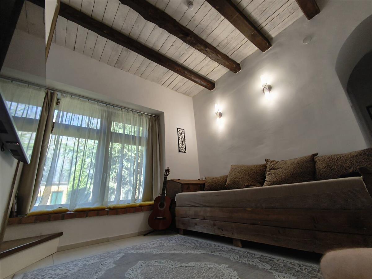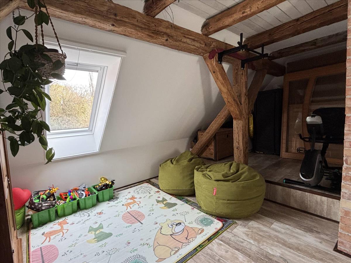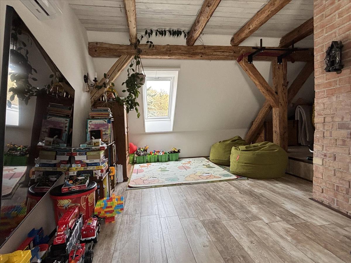 A lakás karakterét a kézzel faragott látszó fagerendák, a régi téglából épített boltíves kandalló és a mélyített ablakfülkék adják, amelyek meleg, otthonos hangulatot teremtenek. a vastag falak és a korszerű szigetelés kiváló hőtartást biztosítanak, így a fenntartási költségek is kedvezően alakulnak.