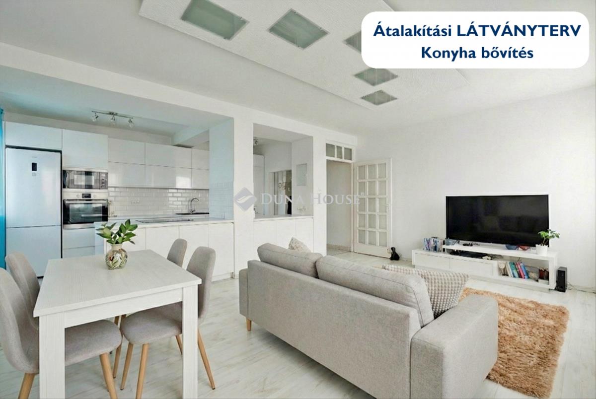 - Átalakítási lehetőség: jelenleg a konyha kisméretű (egy átadóablakkal kapcsolódik a nappali-étkezőhöz), de igény esetén bővítése megoldható (ötletként egy átalakítási terv található a képek között).