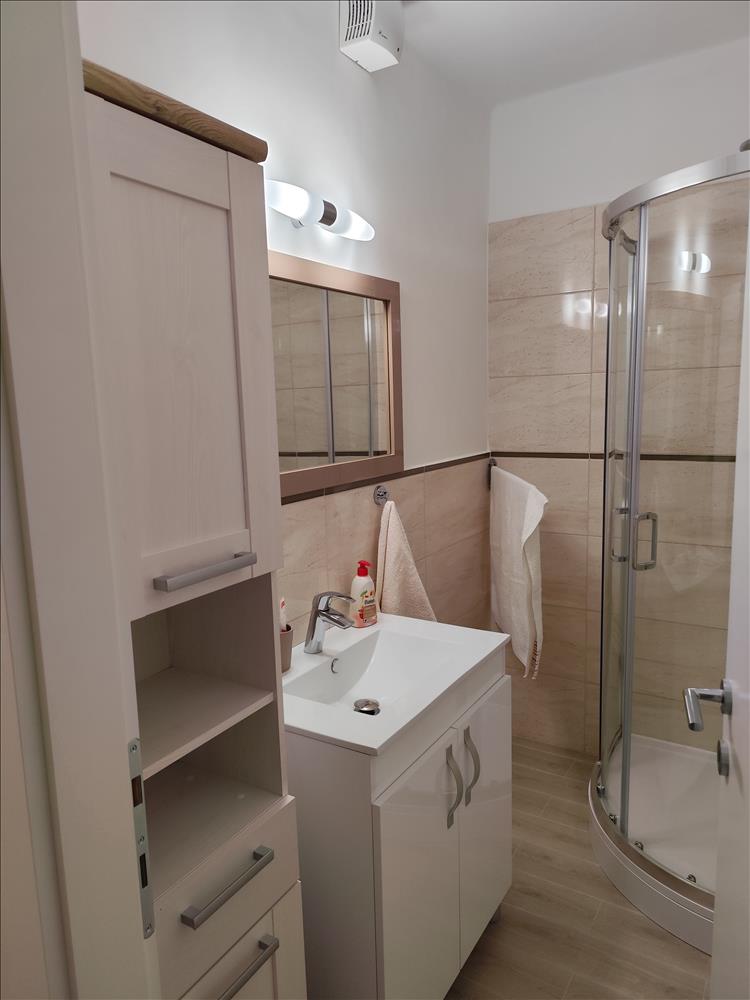 II. emeleti 59m2-es, 2 különnyíló szobával, gardróbbal, loggia-val, fürdőszobával külön wc-vel, mosógép tárolóval, konyhával, a földszinten egy saját tárolóval.