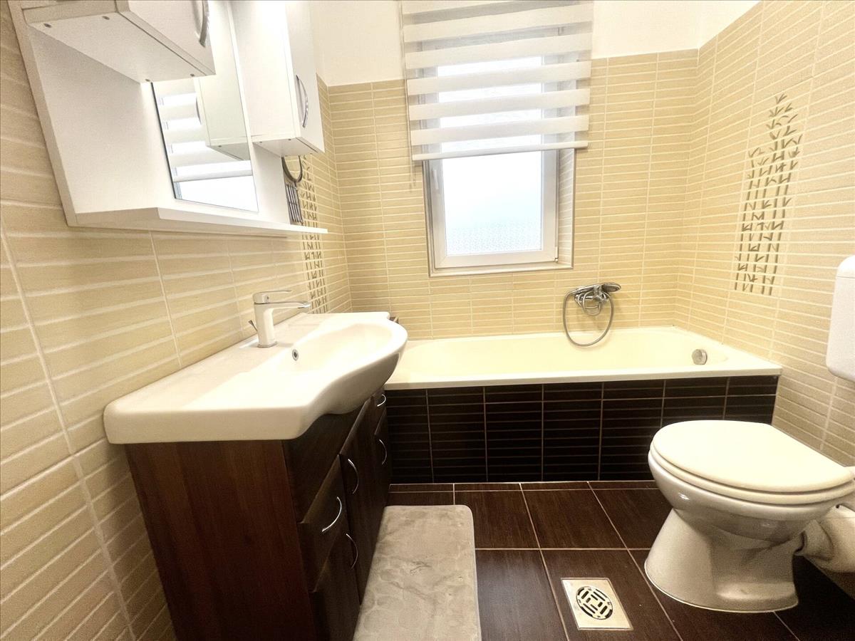 •fürdőkádas, WC-s fürdőszoba mosógép-kiállással