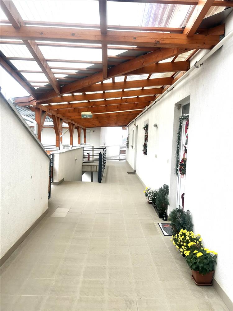 A lépcsőház rendezett, a lakóközösség barátságos. a házhoz tartozó szép, közös kertben homokozó várja a gyerekeket.