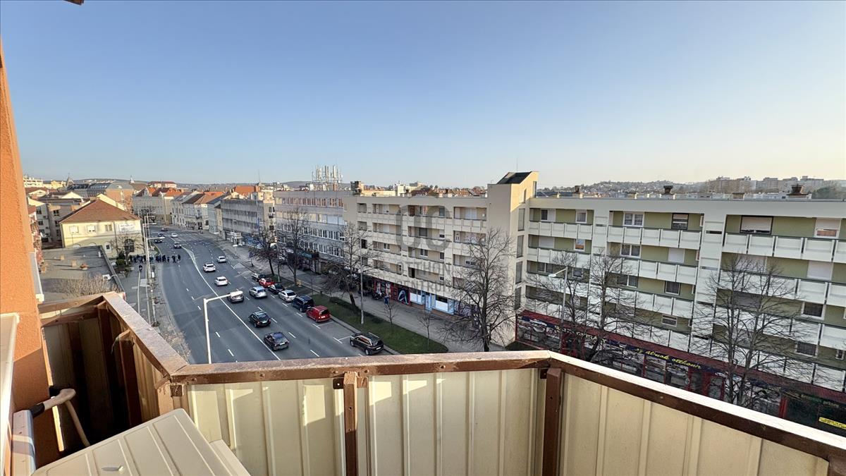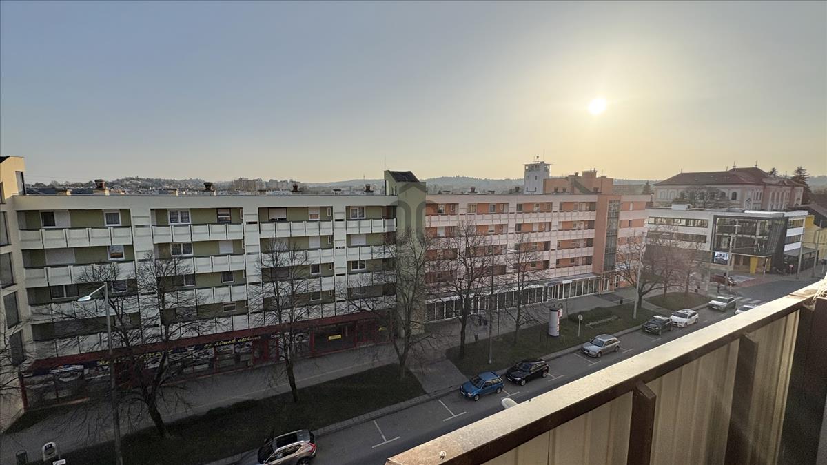 Eladó egy 58 m²-es, amerikai konyhás nappalival rendelkező, erkélyes lakás Zalaegerszeg belvárosában, liftes társasház 5. emeletén, városi panorámával.