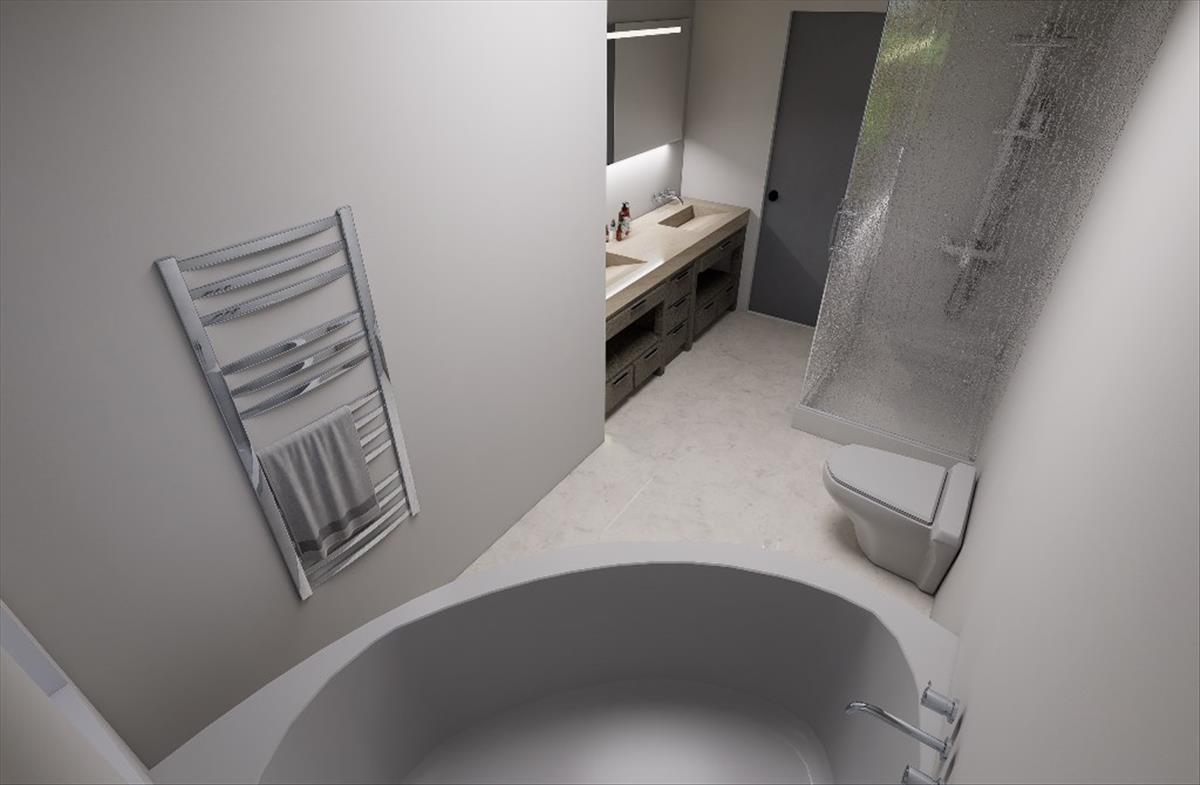 Az épületben víztárolós kondenzációs gázkazán biztosítja a melegvíz ellátást, valamint a padlófűtést is. Alternatív fűtésre és hűtésre is alkalmas klíma, és a fürdőszobába egy elektromos törölközőszárítós radiátor kerül felszerelésre.