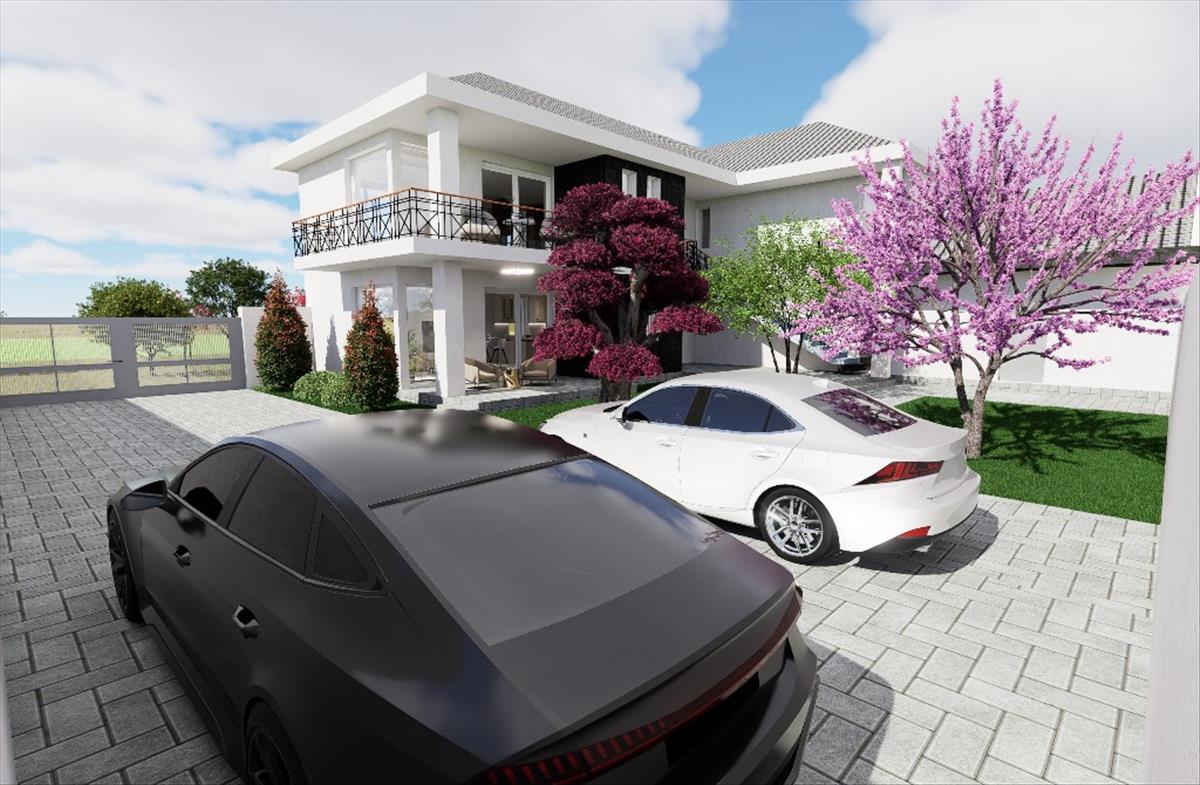 A tető választható színben, 10 cm-es szigeteléssel készül, 30 fokos nyeregtető szerkezettel. Az udvari kapu elektromosan nyíló.