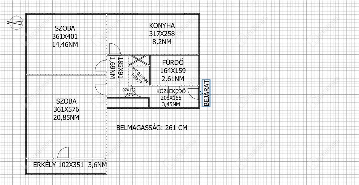 - Tájolás:NY
