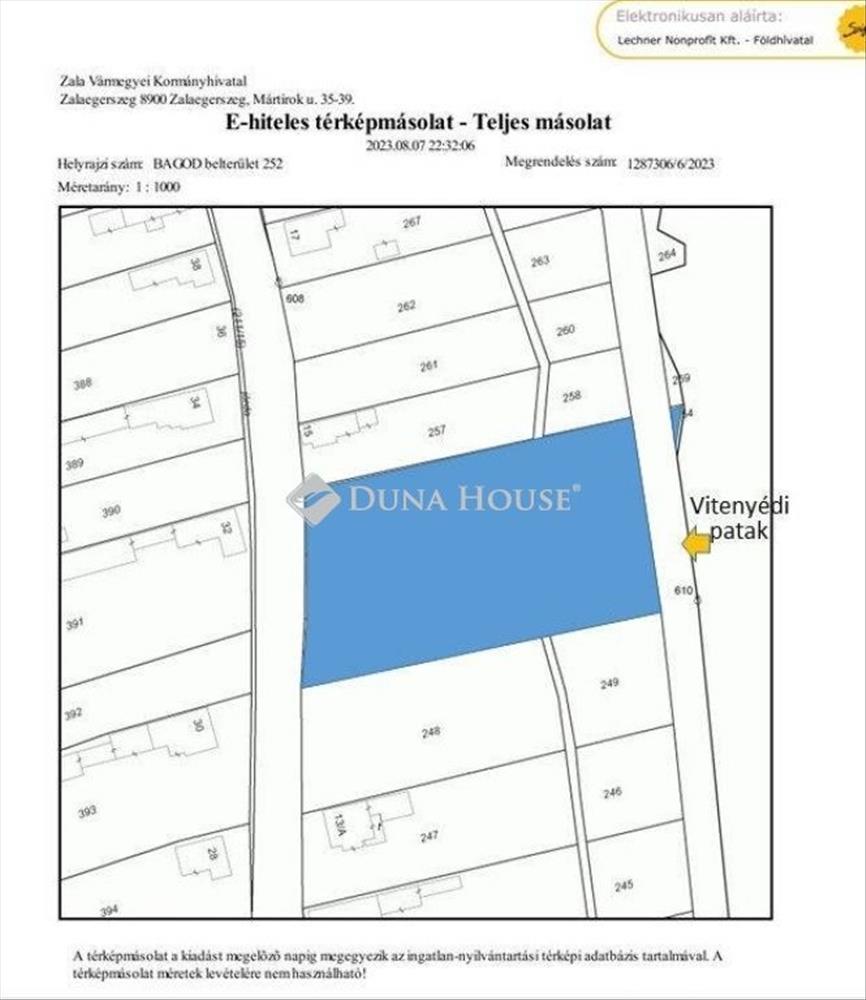 A falusi CSOK preferált településeinek listáján szereplő Bagodon eladó 3900 m2 belterületi telek. a 7 helyrajzi számon elhelyezkedő terület kiváló lehetőséget biztosít álmai megvalósításához. a közútról nyíló kapu mellett jelenleg is nyílt terület található, míg a telek nagyobb részén hűs, árnyékos fásított terület található, nagyrészt égeres, illetve foltokban fenyő állománnyal. Az erdő alatt saját területen belül forrás és csordogáló vízfolyás is található, míg a telket keleti oldalról a Vitenyédi-patak határolja. a meglévő adottságok felhasználásával éppúgy kialakítható egy vadaspark jellegű területen megbúvó rejtek, mint egy kis hidak és sétautak segítségével kialakított kultúrparkban elterülő vendégház vagy nagyobb családi ház. Jöjjön el, nézze meg, szeressen bele és alakítsa saját álmaihoz!