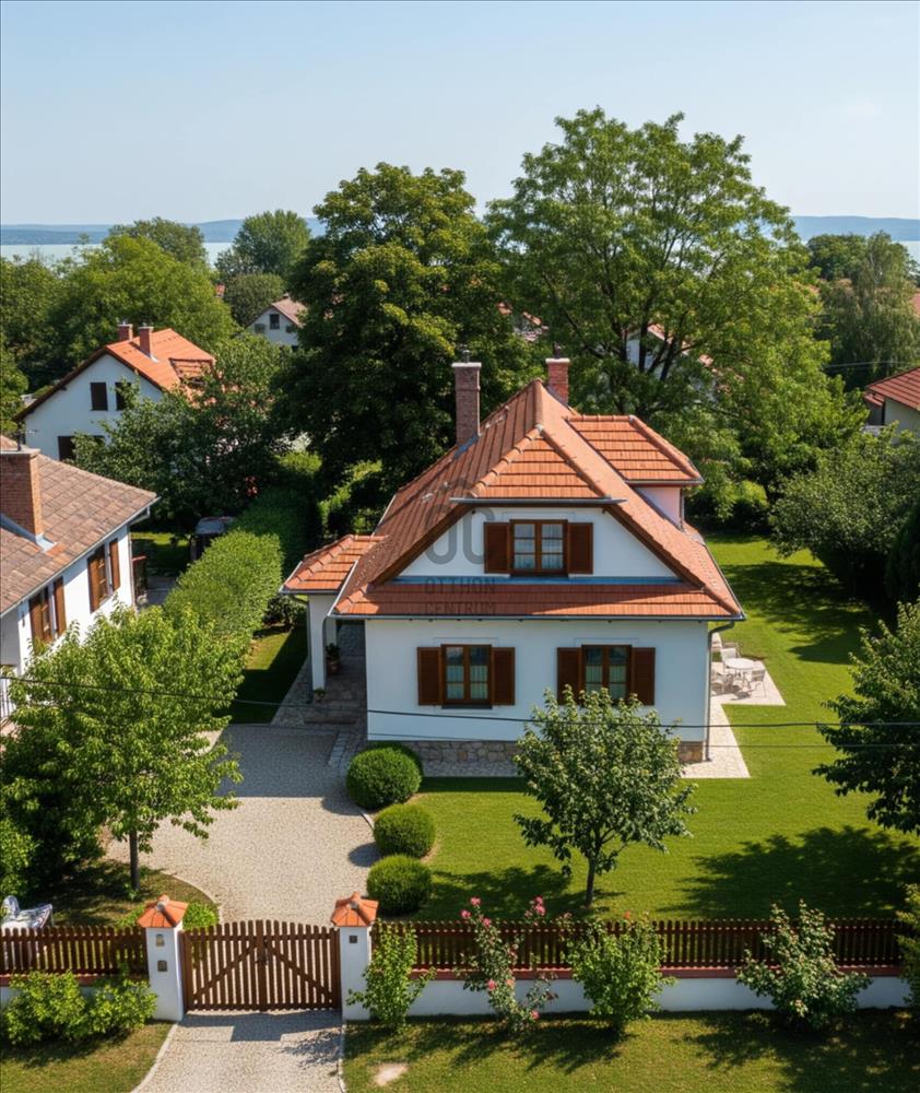 -Balaton parttól 1 km távolságra fekvő, lejtős területű, 1525 m2-es telek, zsákutcában helyezkedik el