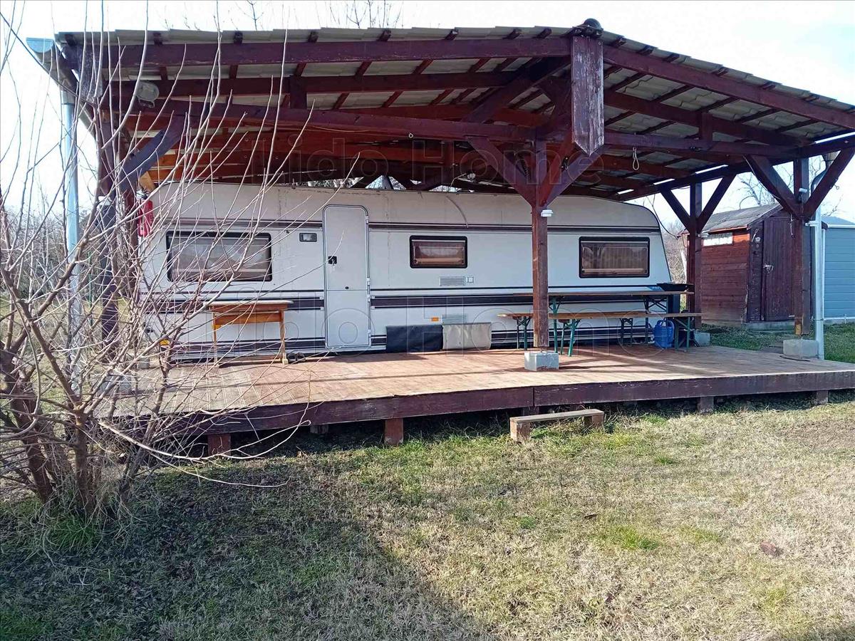 -50 m²-es fatetőszerkezet, lemeztetővel borított, alatta egy 20 m²-es (8x2, 5 m) jó állapotú lakókocsi található (5 férőhelyes). Benne hangulatos fa szekrények, ágyak, praktikus kis konyhával felszerelt.