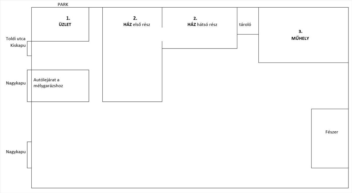 1. Jelenleg az utcafronton kis üzlethelyiség található.