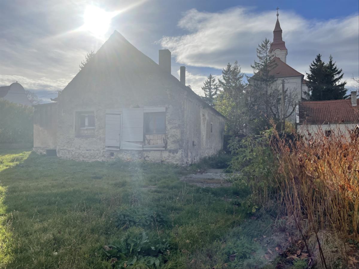 Itt vált eladóvá ez a kivételes adottságokkal bíró ingatlan: a 2633 m2-es belterületi telken egy 156 m2 alapterületű, 100 éves kő- (és részben tégla-) építésű, teljes felújítást és részben bontást igénylő autentikus épület áll, amely korábban katolikus iskolaként működött. (Az épület nem védett, ezért igény szerint bontható). Az épület részben alápincézett. a kőből épített, 3, 81 m széles, 26, 8 m2 alapterületű, hangulatos boltozott pince az épület keleti oldaláról nyílik.