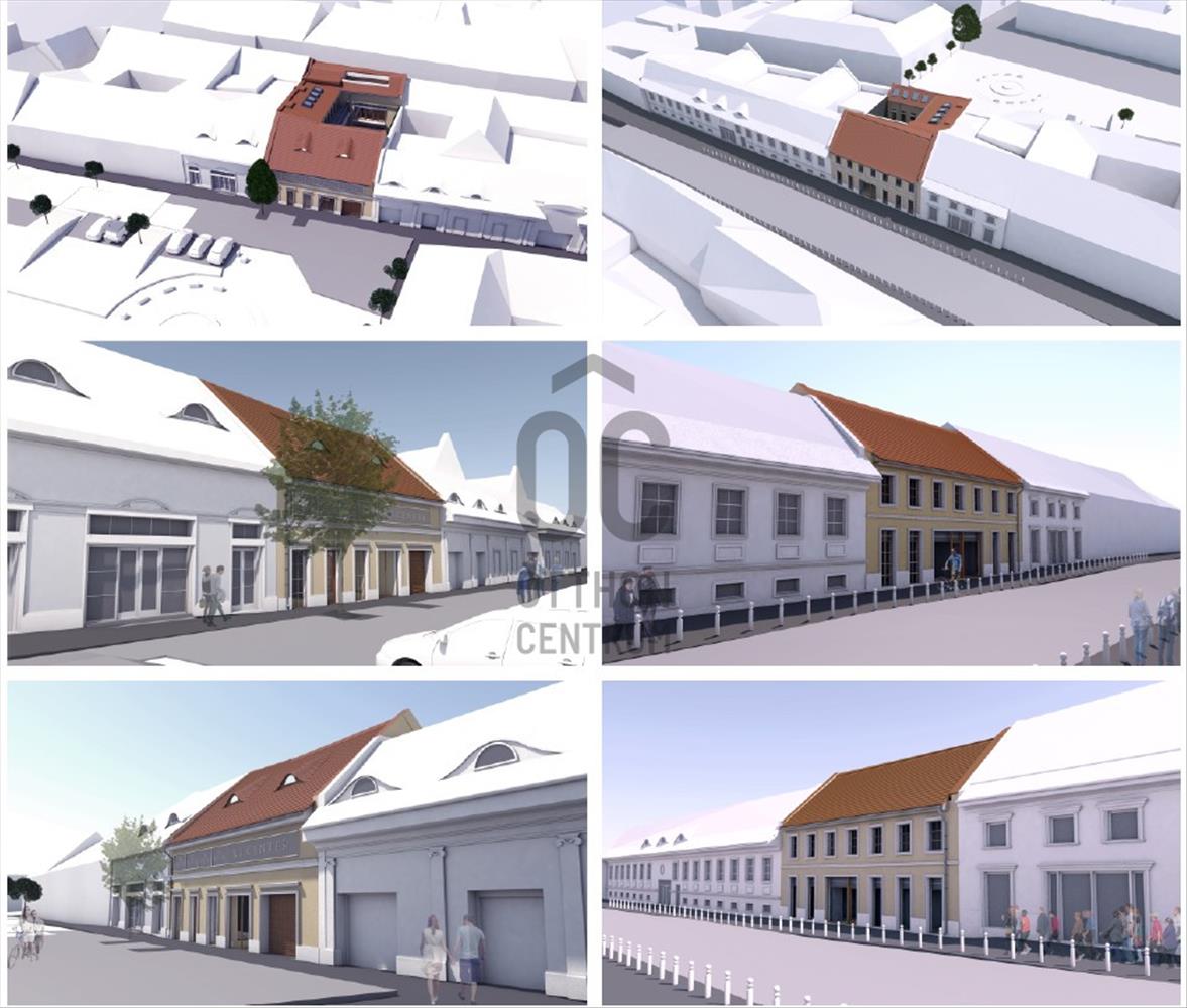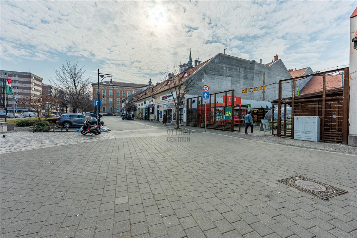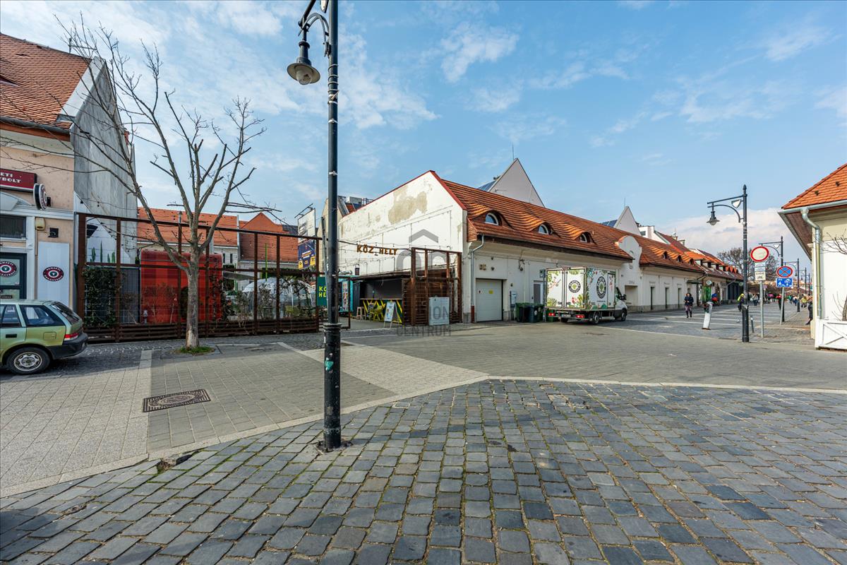 Két utcafronttal rendelkezik, központi elhelyezkedésű.