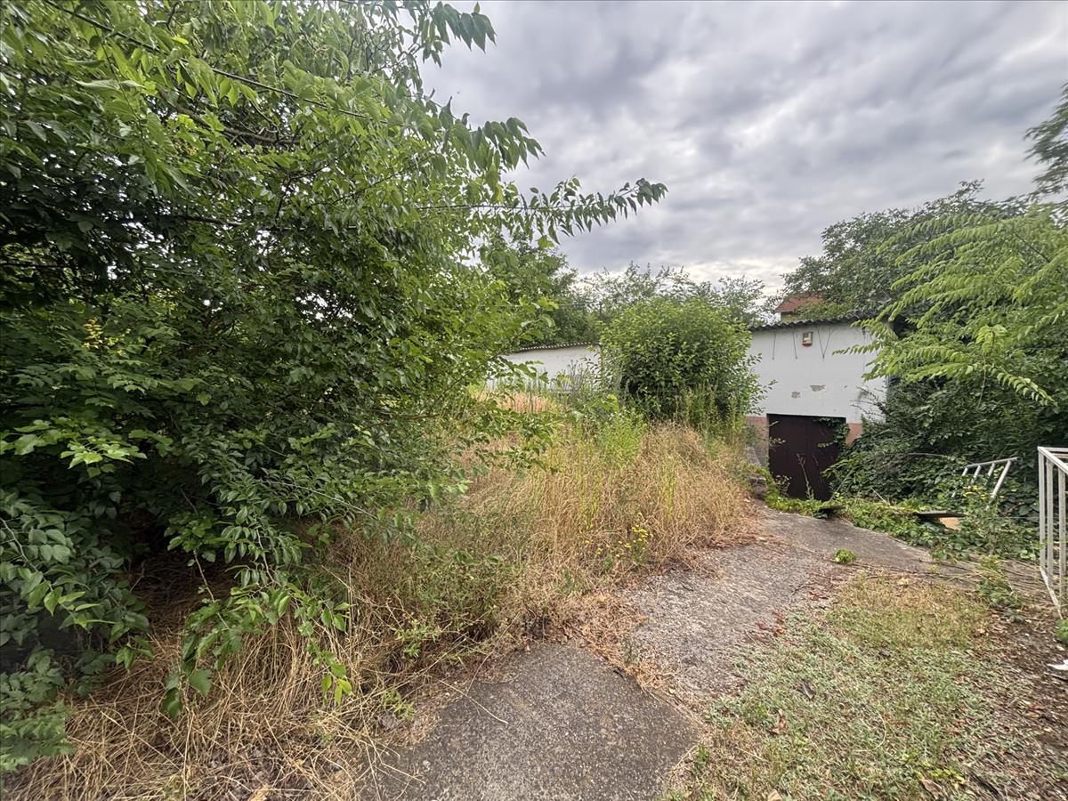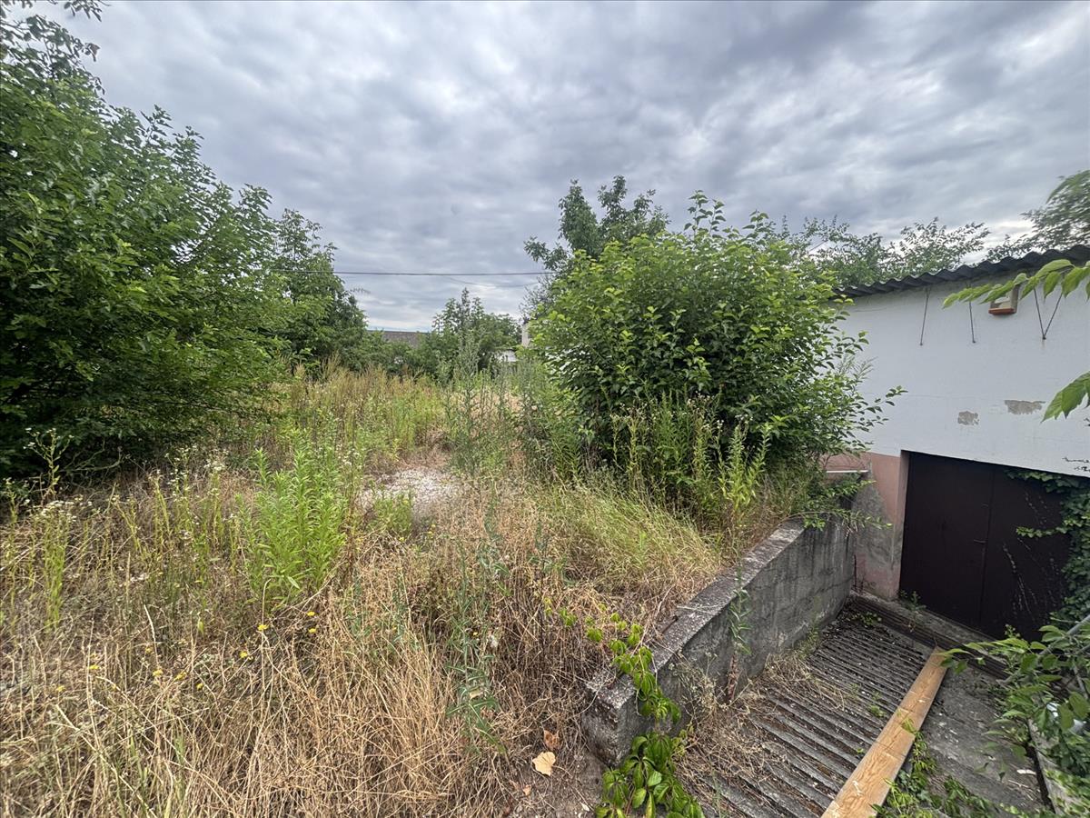 A telek utcafronti részén egy önálló családi ház található, a telek hátsó fele eladó, amin jelenleg egy műhely épület van, amit el kell bontani.