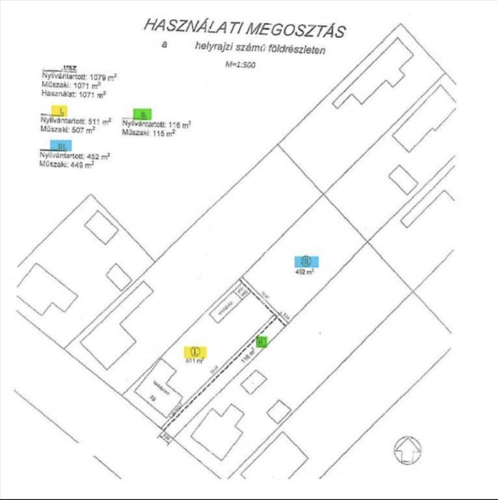 A telket hivatalosan, földmérővel lett felmérve, kijelölve, használati megosztás készítve. Az ügyvédi megosztás a leendő tulajdonossal közösen alakítandó ki.