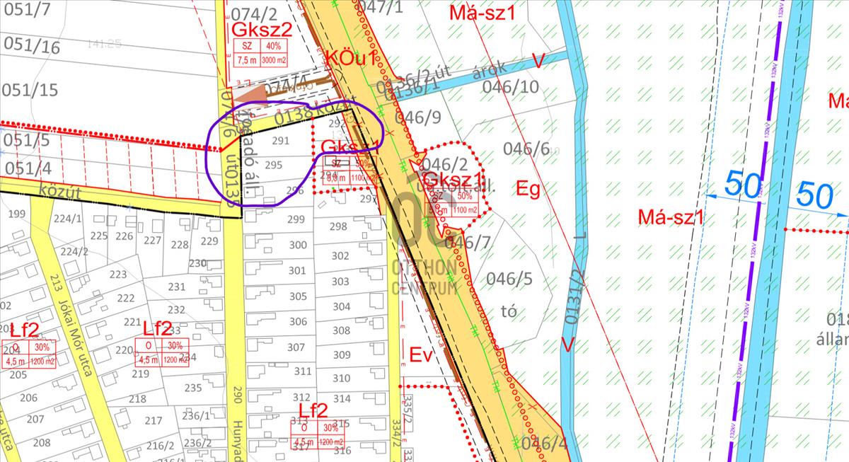 Gksz telek: Kereskedelmi és szolgáltatási célra használható 581 m² alapterülettel rendelkezik