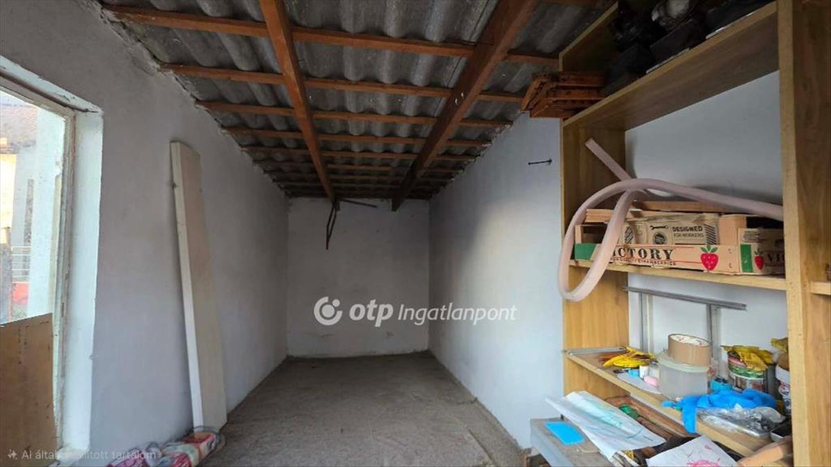 A szabályos telek középső részében, 2016-ban építésre került egy 35m2 beton alapon b30 tégla falazatú, a tető fa szerkezetű és hullámpala héjazatú építmény, amely a jelenben 2 tárolóegységre oszlik.
