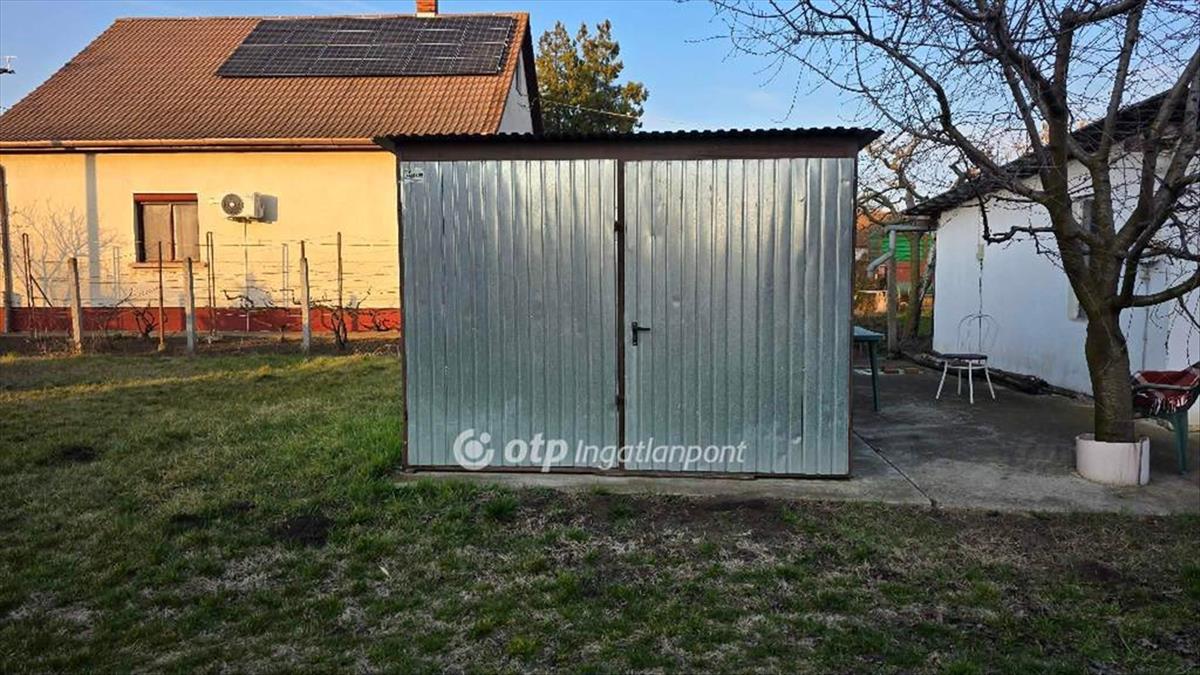 A telken 18m2 beton alapon könnyűszerkezetes garázs, és 8m2 szigetelt tároló kapott helyet.