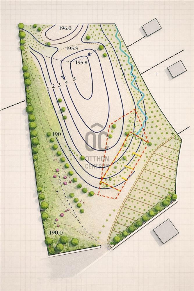 A tó felőli oldal szomszédságában vízmű védterület található, enyhe lejtésekkel.