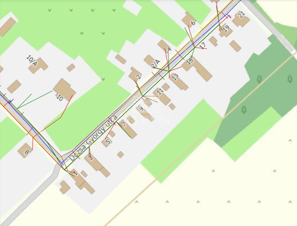 A telek 1789 m2 területtel egy csendes utcában található.