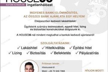 Figyelem az adatlap megbízónktól kapott adatok alapján készült, pontosságáért felelősséget nem tudunk vállalni! a house36 kínálatában található összes ingatlannal kapcsolatban tudok felvilágosítást nyújtani! Hívjon bizalommal! Szolgáltatásaink kereső ügyfeleink számára INGYENESEK!