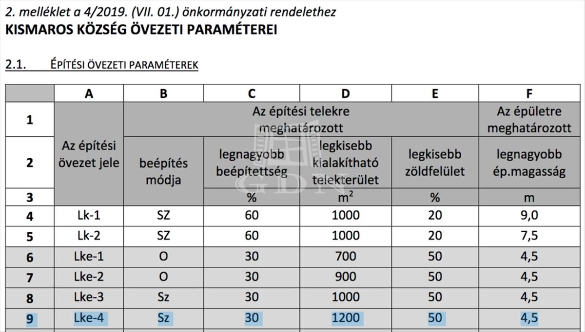 A telek Lke-4 építési övezetbe tartozik, ahol: