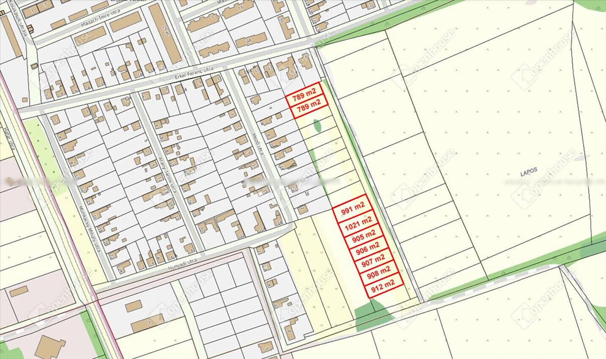 - 789 és 1021m2 közötti méretek, frissen alakuló utca