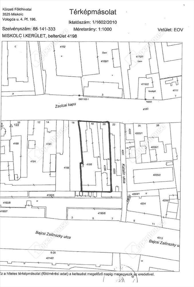 Miskolci ingatlaniroda eladásra kínálja a 152379-es számú Miskolc, belvárosi, 2057 m2-es fejlesztési területét!
