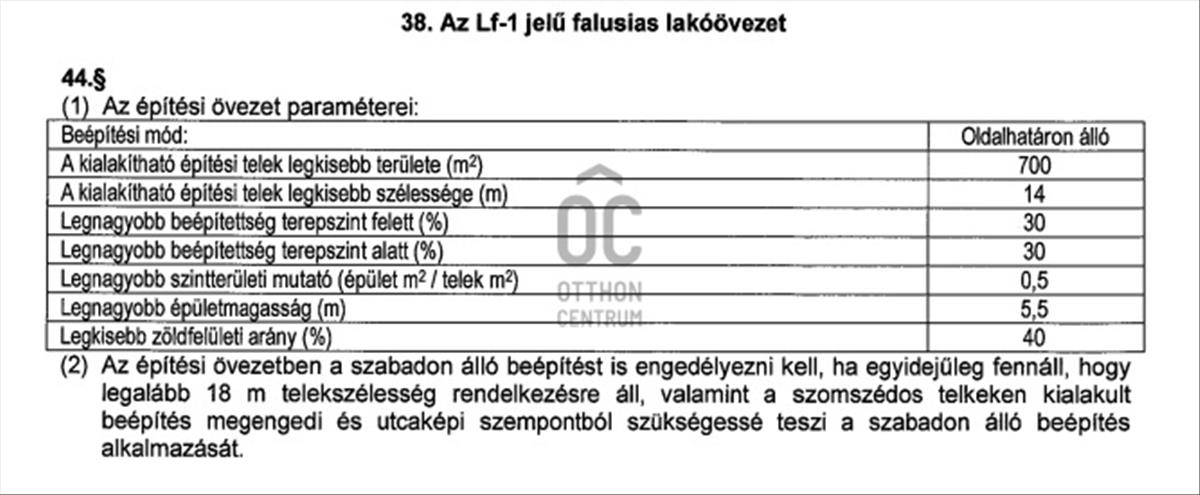 -30% Beépíthetőség LF1-es övezeben