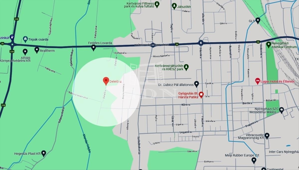 A telek Nyíregyháza Kertvárosi részén, felkapott, jómódu rendkívül csendes környezetben helyezkedik el, így az értékállósága adott. a telektől pár percre található a Kertvárosi játszótér és kresz park, gyógyszertár, gimnázium, étterem, hotel, bútorbolt, coop boltok, autó szervizek, és még számos egyéb kereskedelmi és szolgáltató egységek. Az utca közelében rengeteg új ház épült illettve van már több ingatlan is az utcában, így a Delelő utca is hamarosan teljesen be fog épülni.
